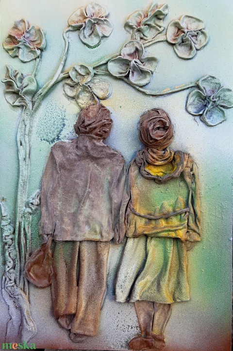 "Ha egyszer majd megöregszünk" 20x30cm-es falikép, textilszobrászattal készítve
