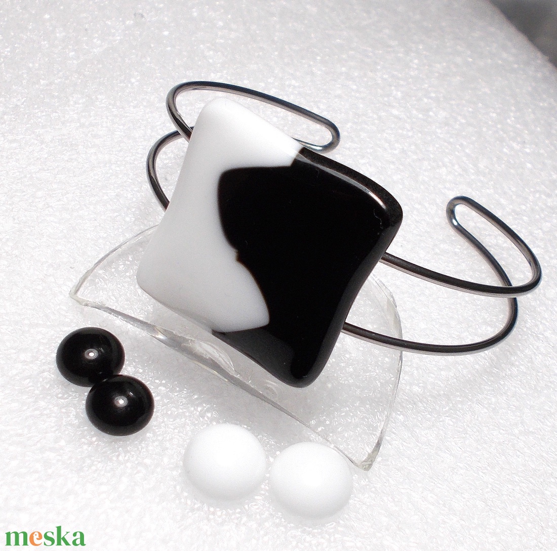 Fehér-fekete nemesacél karkötő és fülbevalók.