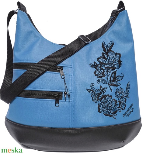 MAXI méretű hímzett sokzsebes textilbőr pakolós táska fekete kék