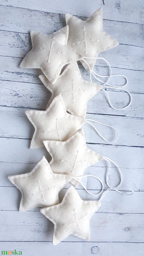 Bababarát karácsonyi filc díszek, krémszínű csillagok
