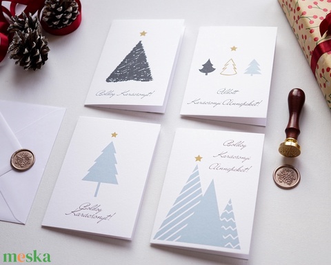 Karácsonyi Képeslap 4 darab Minimalista karácsonyi üdvözlő lap, képeslap gyűjtemény
