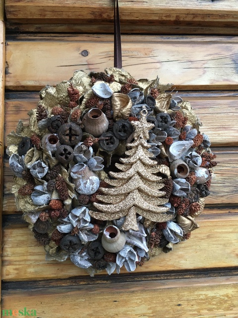 Barna-arany karácsonyi kopogtató, ajtódísz