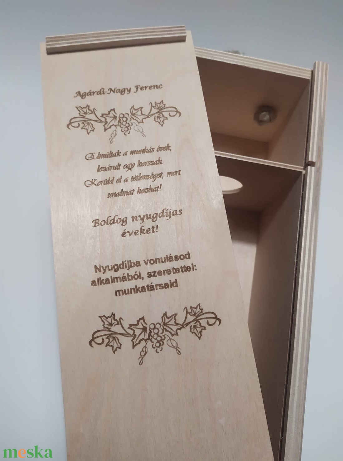 Gravírozott bortartó, nyugdíjba vonulásra ajándék