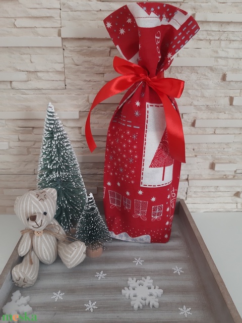 Boros, italos ajándékzsák - piros alapon kari mintás