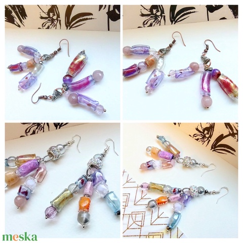 - Anyaga: fülbevalóalap, üveggyöngy, gyöngy, pandora stílusú gyöngy, újrahasznosított pet palack gyöngy