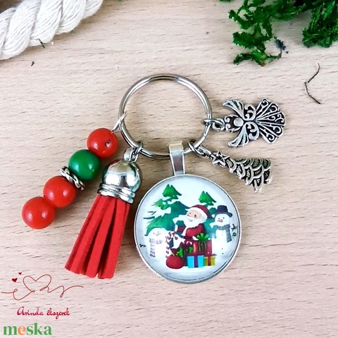 Karácsonyi 2 üveglencsés bojtos kulcstartó táskadísz