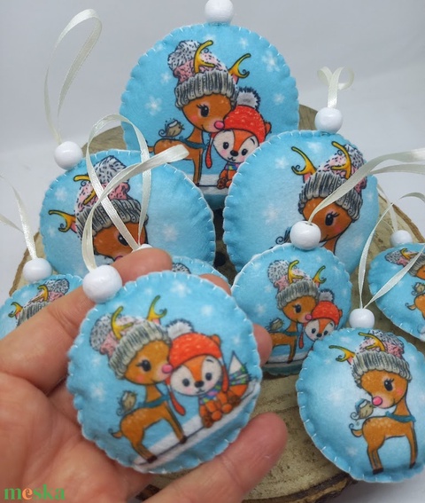 Őzike és Róka- filc karácsonyfa dísz (9 db)