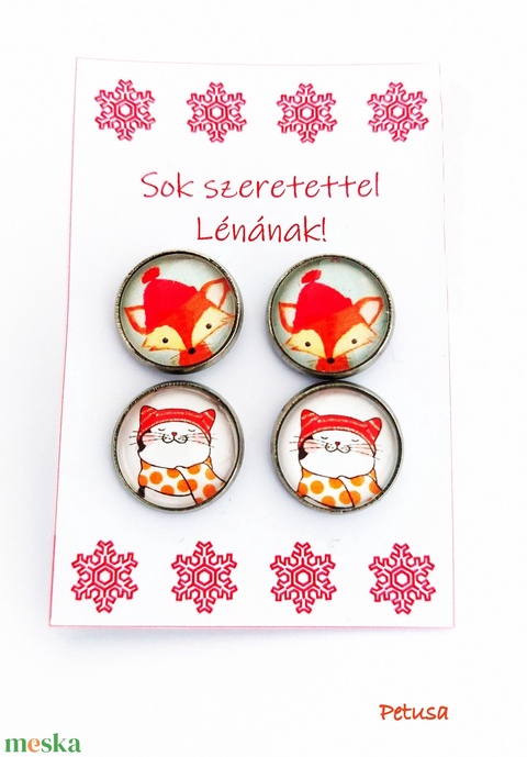 Sapkás rókás és cicás nemesacél fülbevaló szett cuki állatos