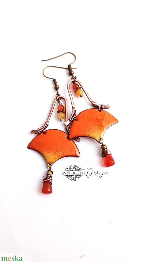 Szemira - tűzzománc-réz fülbevaló - narancssárga