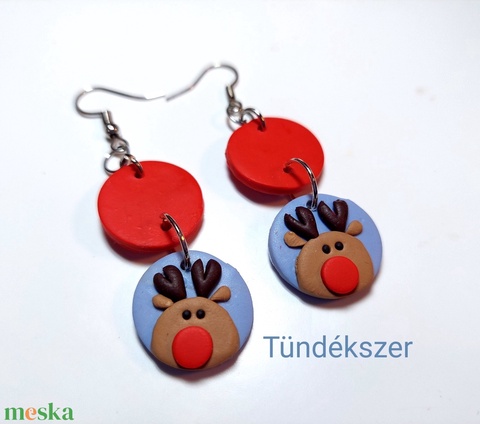 Cuki rénszarvas gyurma medálos fülbevaló