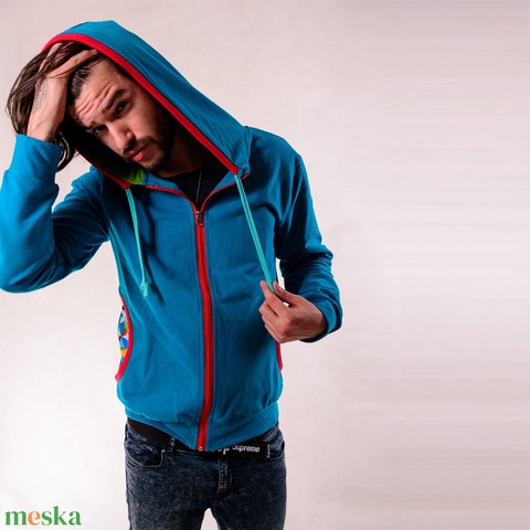 Sötéttürkiz férfi kapucnis pulcsi - PETROL