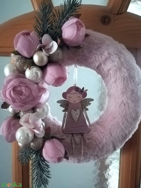 Angyalkás, romantikus, csajos karácsonyváró ajtódísz