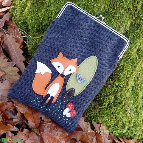 Könyvtok, tablet tok erdei rókás, foltvarrással, hímzett