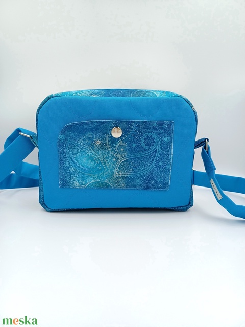 Újabb válltáska a türkiz szerelmeseinek. Kis méretű, mégis belül tágas a 6 cm mélységének köszönhetően. Egy összecsukható esernyő, egy nagyobb pénztárca, mobiltelefon és még sok-sok apróság is elfér benne egyszerre.
