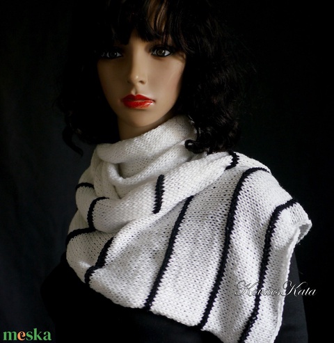 KASMIRA - extravagáns kézzel kötött sál, stóla / fehér-fekete