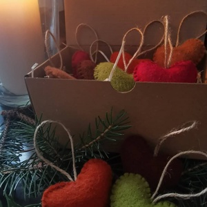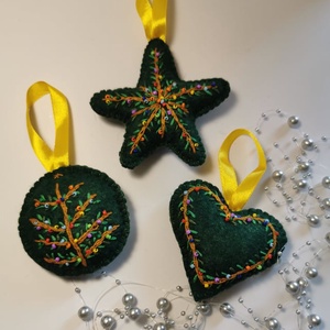 FENYŐZÖLD KARÁCSONYI CSILLAGMAG-DEKORÁCIÓ 3 DB/SZETT HÍMZÉSSEL GYÖNGYÖKKEL TERMÉSZETES ANYAGOK GYAPJÚFILC GYAPJÚ NEMEZ