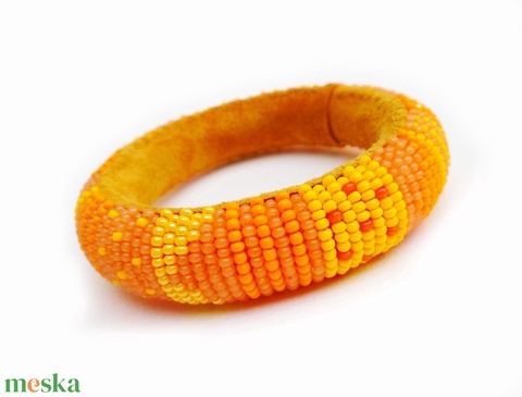 Napsárga - nyáridéző, nőies, pillekönnyű guriga karkötő gyöngyből, filcből és bőrből