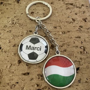 Névreszóló focis, magyar zászlós nemesacél kulcstartó, táskadísz - feliratos, neves, dátumos, számos