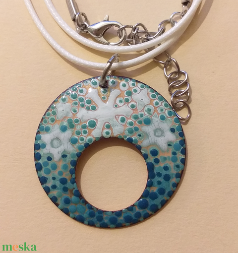 - Anyaga: vörösréz, tűzzománc, műbőrszál, akasztókarika
