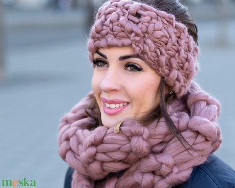 Fejpánt, antik mályva színben / fülmelegítő kézzel font fonalból