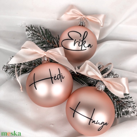 Karácsonyi gömb, egyedi, névre szóló felirattal - üveg karácsonyfa dísz - Rosegold