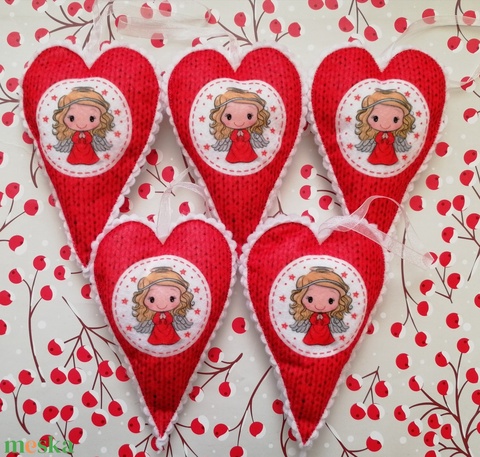 Karácsonyfadísz - kötött piros alapon angyalkás