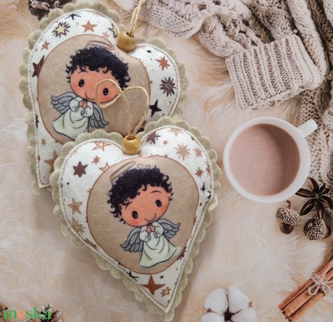 Kis fiús angyalka szív dísz