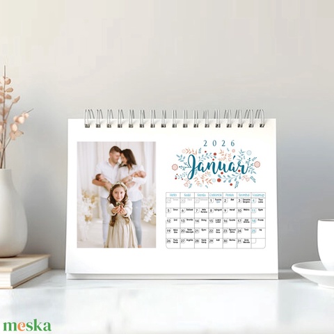 2026-os személyre szabható 13 oldalas, színes, fényképes asztali naptár.