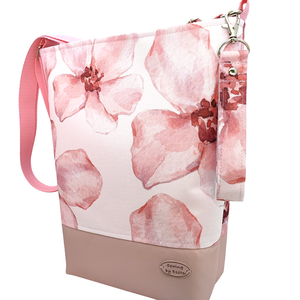 Rózsaszín virágos táskadísz / kulcstartó / akasztó / csuklópánt