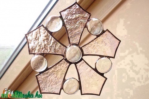- Anyaga: irizáló üveg, rézfólia, patina, rézdrót, ón, üvegkavics