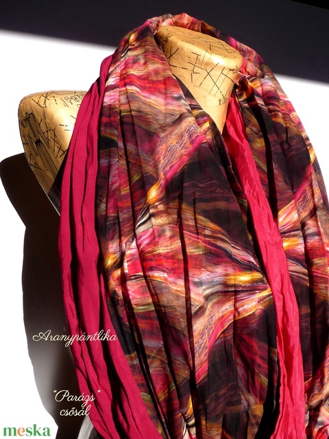"Parázs" EXTRA SZÉLES hernyóselyem-pamut-viszkóz selyem csősál - Aranypántlika