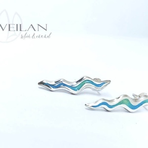 Wave ezüst tűzzománc fülbevaló - kék-zöld