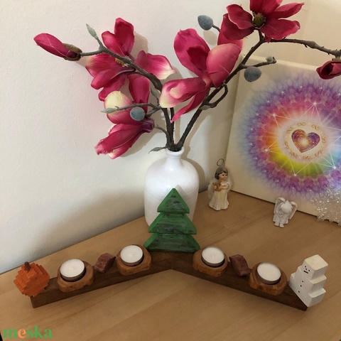 Egyedi bükkfa karácsonyi, adventi mécsestartó