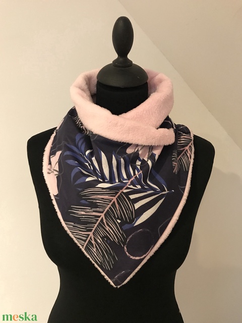 "Rózsaszín-kék leveles meleg körsál, sál"