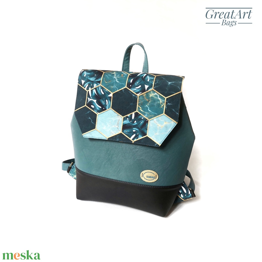 Női fedeles hátizsák - türkiz, méhsejtmintás