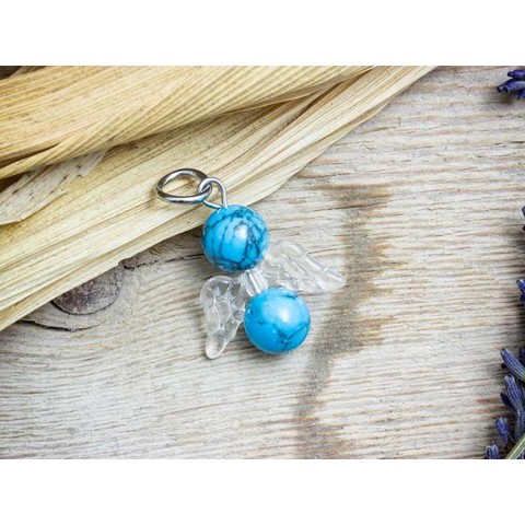 Az angyalok szerint, ha mindenki megtanulna kérdések, kételyek nélkül bízni az ösztöneiben, a világ sokkal békésebb hely lehetne. Bízz magadban, és válaszd ki saját védőangyal vagy segítő angyalodat! A megérzés útba igazító, és nem megmagyarázó rendszer. Tanulj meg tehát bízni az ösztöneidben anélkül, hogy mindig keresnéd a magyarázatokat, a visszaigazolást.A valódi ásvány medál fém akasztó részét acélból / orvosi fémből készítettük, így tökéletesen antiallergén. Az angyalka szárnya akrillból készült. Az angyalka fejét, és testét valódi 8mm-es türkinit ásvány gyöngyök alkotják.Amit a türkizről érdemes tudnod:A türkiz színe halványkék - halványzöld, átlátszatlan. A kék ég és a tenger, a végtelen átlátszó magasság és mélység szimbóluma, a régi időkben szent kőnek tartották. Kedveltsége az oszmán birodalom idején érte el csúcspontját. Keleten a türkiz még ma is szerencsekőnek számít. Az aztékok, egyiptomiak és tibetiek mágikus ereje miatt tisztelték. Indiában a test védelmezője szerencsétlenségek és balesetek ellen. Dél-Iránban szegénység és korai halál elleni amulettként viselik. A türkiz az indiánok gyógyító köve. Az indiánok, az egyiptomiak és a görögök is védő- és gyógyító kőként tisztelték. Egy régi közmondás szerint: A kéz, amely türkizt visel, soha sem lesz szegény. A türkiz név annyit tesz, hogy török kő, mert kereskedelmi útvonala Törökországon át vezetett. Legszebb darabjait Északkelet-Iránban találják, de Afganisztánban, Kelet-Ausztráliában, Kínában is szép darabok kerülnek elő. A tiszta kék szín ritka, ezért ezek a példányok drágák is, többnyire barna erezetet mutat. A türkiz elérhető nyers ásványként, marokkőként, golyóként, nyaklánc, függő és sok más fantáziadús formában.Gyógyhatása:A türkizt magas réztartalma miatt torok- és tüdőgyulladásnál, bronchitis és szívpanaszok ellen használják. Beszédzavarok esetén serkenti a gondolatok és érzések tiszta és konkrét kifejezését. Rezgése megnyitja a torokcsakrát, ezért a türkizt a beszédhibák (például dadogás) javítására is használhatjuk, de abban is segítségünkre van, hogy megtaláljuk a megfelelő időben a megfelelő szavakat. Lelki problémák és krízisek által okozott túlzott verejtékezés, görcsök, csillapíthatatlan étvágy, bulémia a kő segítségével korlátok között tartható. A türkiz hatása rendkívül sokrétű, leginkább azonban a torok tájékára és a légutakra van hatással. Használhatjuk köhögés és hörghurut, torokgyulladás, szamárköhögés, pszeudokrupp, mindenféle tüdőbetegségek, tüdőgyulladás, nyelési zavarok, megfázás, de akár pajzsmirigyműködés szabályozásának szükségessége esetén is. Alkalmazhatjuk továbbá fogínygyulladás, fogínyvérzés, vagy ínysorvadás kezelésére. Hatással van az ízületekre és az izmokra, jó ínszalaghúzódás, -gyulladás vagy -szakadás esetében, használhatjuk izomláz, izommerevedés ellen is. A türkiz segíti a szervezet méregtelenítését és savtalanítását, így rendkívül jó hatással van a vesére is. Hátráltatja a hólyag- vagy vesekövek kialakulását. Használatával felszívódnak az ödémák is. Segíti a zsírégetést, ezért jó hasznát vesszük, ha diétázunk. A türkiz erősíti a májat, a mirigyeket, a szemeket és a keringést. Segít depressziónál, kóros étvágytalanságnál (anorexia), oxigénhiánynál, vérmérgezésnél és stressznél.Lelki hatása:A türkiz nagyon erős kő, amely az érvelésben és a véleménynyilvánításban nagy segítségünkre van. A türkiz több magabiztosságot kölcsönöz és aktiválja a lehangolt és visszafogott embereket. A tartózkodó emberek feltétlenül viseljenek egy türkiz követ, vagy egy türkiz láncot a nyakuk körül önbizalmuk aktiválása érdekében. Az ég, a víz és a föld bölcsességét adja át nekünk, a hagyomány szerint a türkiz rezgése testünk körül egy erőteret képez, ami megvéd minket a gonosz hatalmaktól. Színe az érzések, a gondolatok és a tettek tisztaságára ösztönöz. Képes arra, hogy negatív érzéseinket és benyomásainkat még azelőtt szétszórja, illetve felvegye, hogy mi tudatában lennénk ennek. Ha lelkiállapotod erősen ingadozóvá válik, tartsd a kezedben 15-20 percig ezt a követ, így segít megszüntetni a stresszt, félelmet, és akár a depresszióból is kisegít. A türkiz több tetterőt, alkotóerőt közvetít viselőjének úgy a magánéletben, mint a hivatásban. Azoknak az embereknek, akik gyakran vannak üzleti úton, a balesetek ellen védelmet jelenthet egy türkiz kő viselése. Legcsodálatosabb és legértékesebb tulajdonsága azonban az a képessége, hogy sorscsapások vagy egészségi állapotunk változása esetén figyelmeztetésként megváltozik a színe. Negatív esetben azúrkék színe elhalványul és szürkés-zöld lesz. Élénk színe napon rövid idő alatt visszatér. A türkiz segít elhatárolódnunk a lelki terhektől. Megszünteti az ingadozó kedélyállapotokat, a félelmet, depressziót, javítja a kedélyt, segít megőrizni energiatartalékunkat. Kimerült állapotban nagy segítséget jelenthet használata. Tisztítja és erősíti az aurát, óv a negatív energiától és rezgésektől. Hajdan a fekete mágia hatásainak kiküszöbölésére használták. A türkiz helyreállítja a lelki harmóniánkat, erősíti intuíciónkat, s mivel hatására bensőleg megnyugszunk, mélyíti a meditációt is. Figyelem! Az ásványokat, kristályokat az őskor óta használják a test, a lélek és az érzelmek harmonizálására. Az ókori kultúrákban kifejezetten elterjedtek voltak. Az évezredek alatt számtalan tudás és tapasztalat gyűlt össze róluk. Ásvány ékszereink leírásánál a meghatározó 