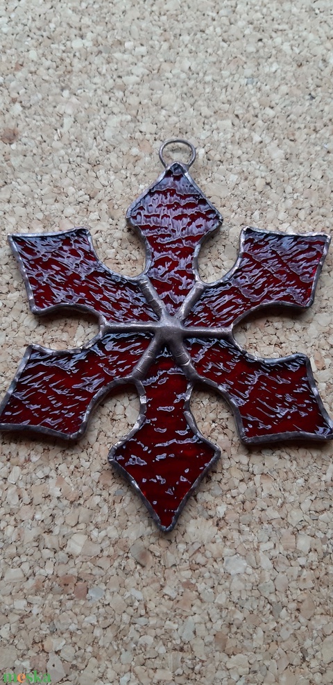 - Anyaga: szines üveg, rézfólia, rézdrót, ón, patinázó folyadék