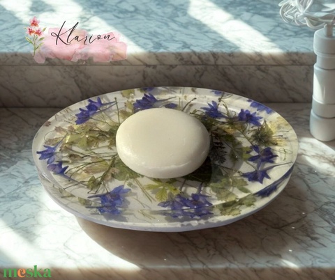 Szappantartó szárított virágokkal, levelekkel gyantába öntve