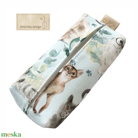 Cicák és egerek mintás, bélelt papírzsebkendő tartó - Artiroka design
