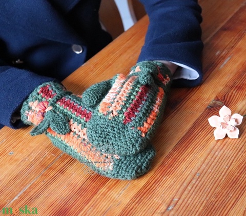 Egyujjas horgolt kötött bohém női kesztyű gyapjúból fázós kezűeknek öko gyapjúból