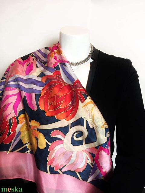 - Anyag/Összetevő selyemkendő, 100%, hernyóselyem, selyemfesték
