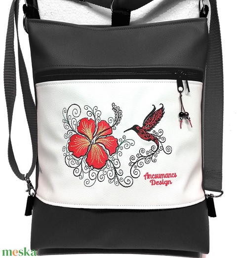 Hímzett kolibri madaras 3in1 hátizsák univerzális táska fekete-fehér