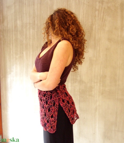 Padlizsán kézzel horgolt kötött mellény tunika kötmény gyapjúból