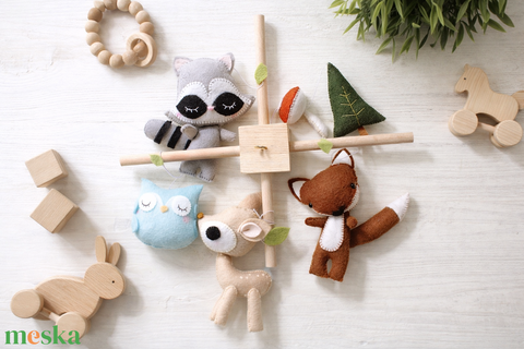 ERDEI Babaforgó, Kiságyforgó bagoly róka szarvas mosómaci, Kézműves termék Mancsicsi műhelyéből