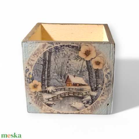 - Anyaga: matt lakk, dekorláda, rizspapír, akril festék, hópaszta, jégpaszta