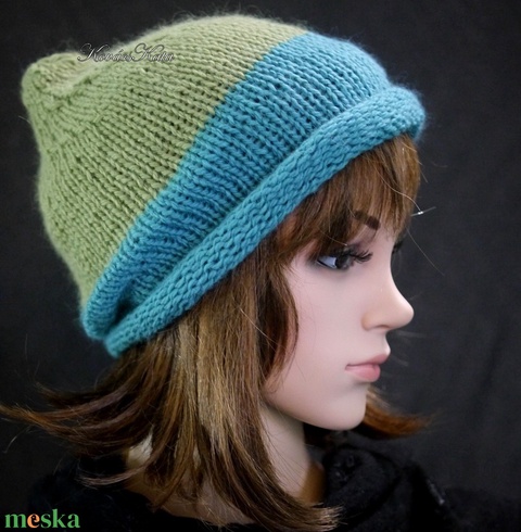 BEANIE/ angóra - trendi kézzel kötött sapka / türkiz-almazöld
