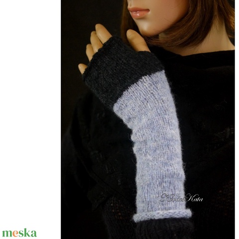 BOSZI-KESZTYŰ / sky - kézzel kötött alpaka kesztyűszár, kézmelegítő / kék-fekete