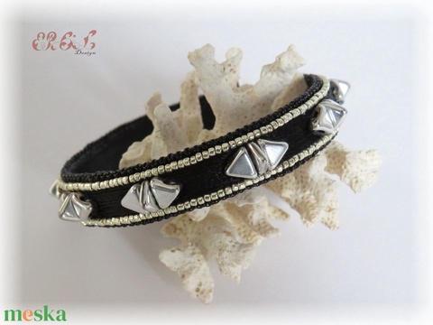- Anyaga: bőr, kásagyöngy, üveggyöngy, kapocs, háromszög, triangle