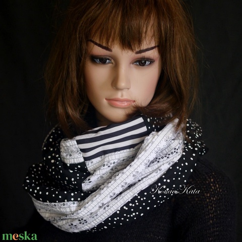 INFINITY / op-art - pamut körsál, csősál / fekete-fehér