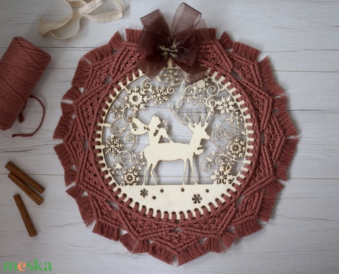 Makramé szarvasos falidísz